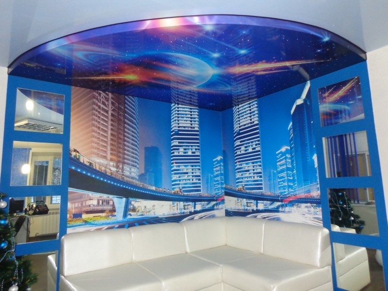 Многоуровневые натяжные потолки позволяют реализовать различные дизайнерские задумки в помещении, встроив специальную подсветку, разграничив отдельные зоны для работы и отдыха.